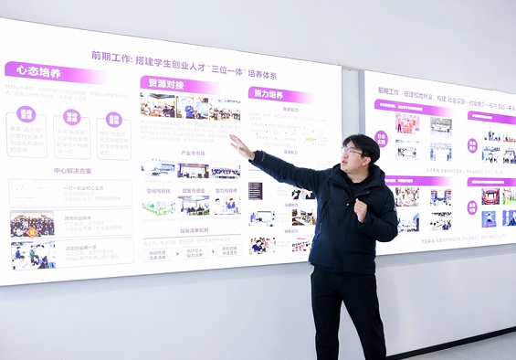 心态上“扶一把”。通过“一对一创业初心交流”和“跟岗创业锻炼”,拔尖创新中心帮助年轻人摒弃犹豫,树立起“主人翁”意识。这里有优秀的师兄师姐“传帮带”,用真实的经历告诉他们,创业之路虽险,但并非孤军奋战。